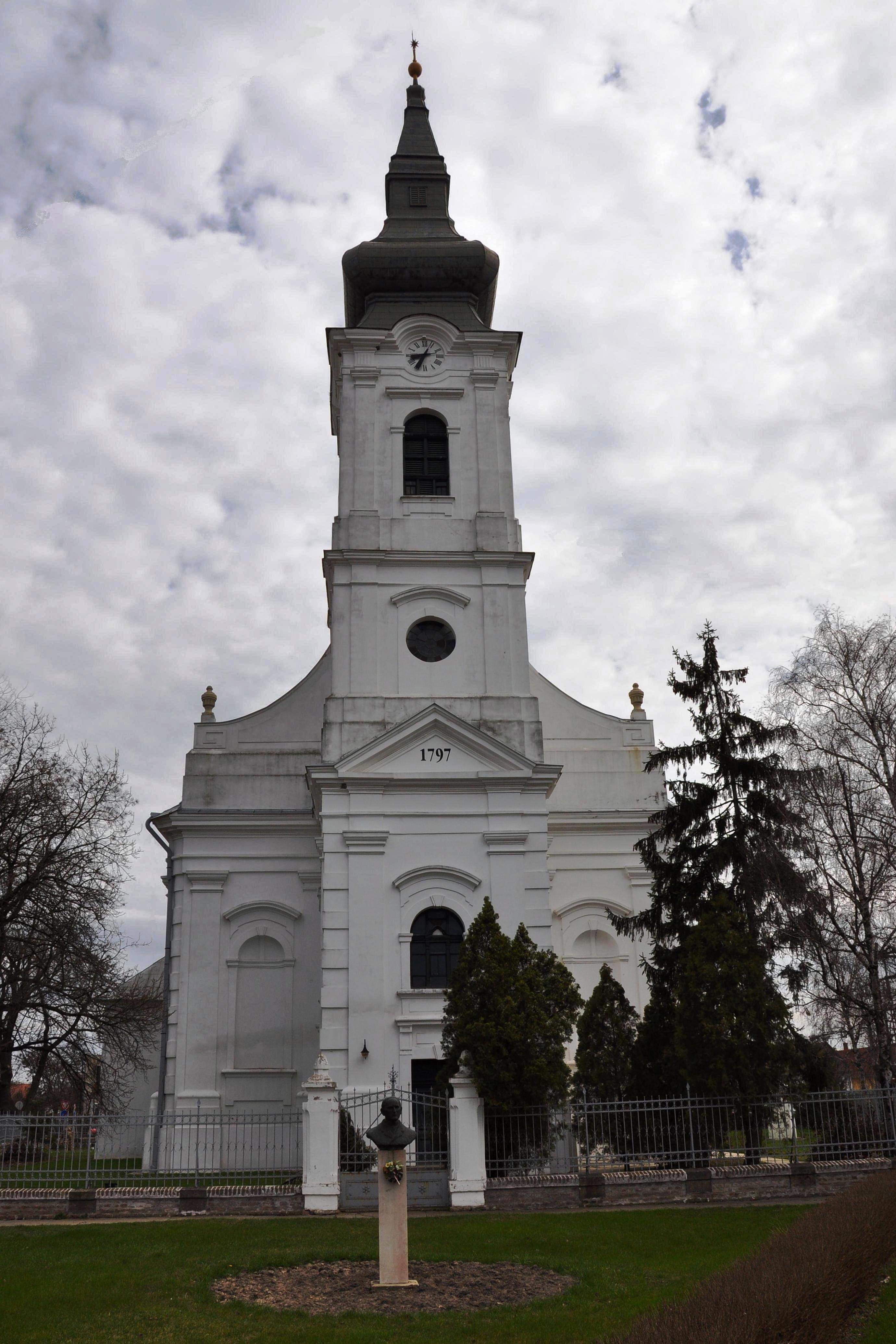 A késő barokk stílusú református templomot Czigler Antal, neves gyulai építőmester építette 1804-ben. A szép fakerítés előtt – melyet a Makovecz-stúdió tervezett és Tóth Sándor mezőberényi fafaragó készített – Bethlen Gábor szobra áll.