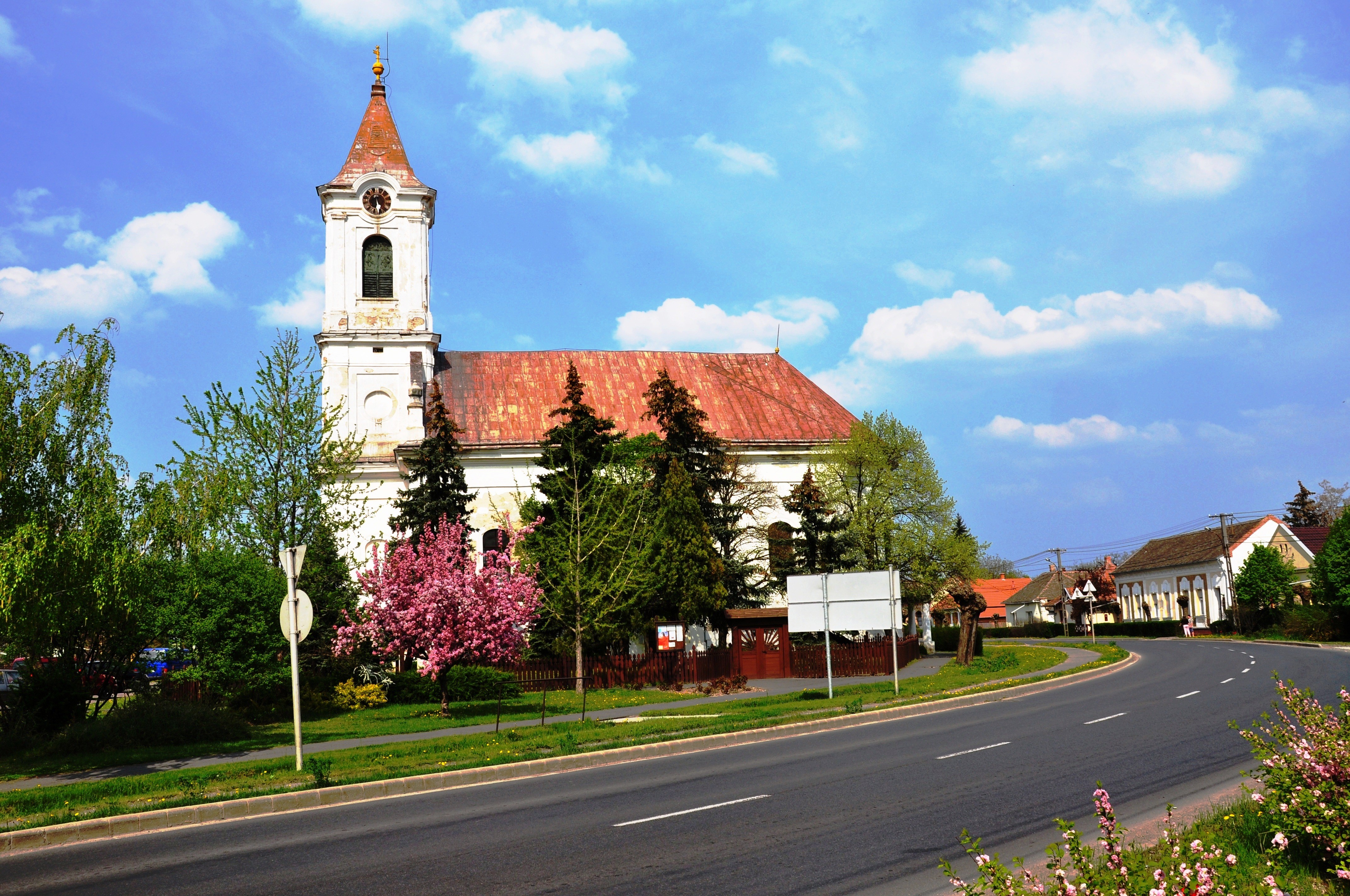 Megfordulva és áttérve a Fő út másik oldalára, visszasétálhatunk a város központjába. Útközben elmegyünk a többi templomhoz képest kicsiny római katolikus templom mellett, majd elérjük a Wenckheim-Fejérváry kastélyt, a helytörténeti gyűjtemény épületét.