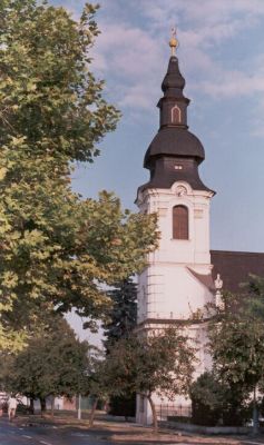 Ha a Fő úton balra fordulunk, messziről már láthatjuk a tót templom tornyát. Előbb azonban vegyük szemügyre a templommal szemben lévő volt 1. számú Általános Iskola (ma az összevont iskola alsó tagozatának otthont adó) épületét. Tornacsarnokának falán Molnár Miklós domborműve látható.