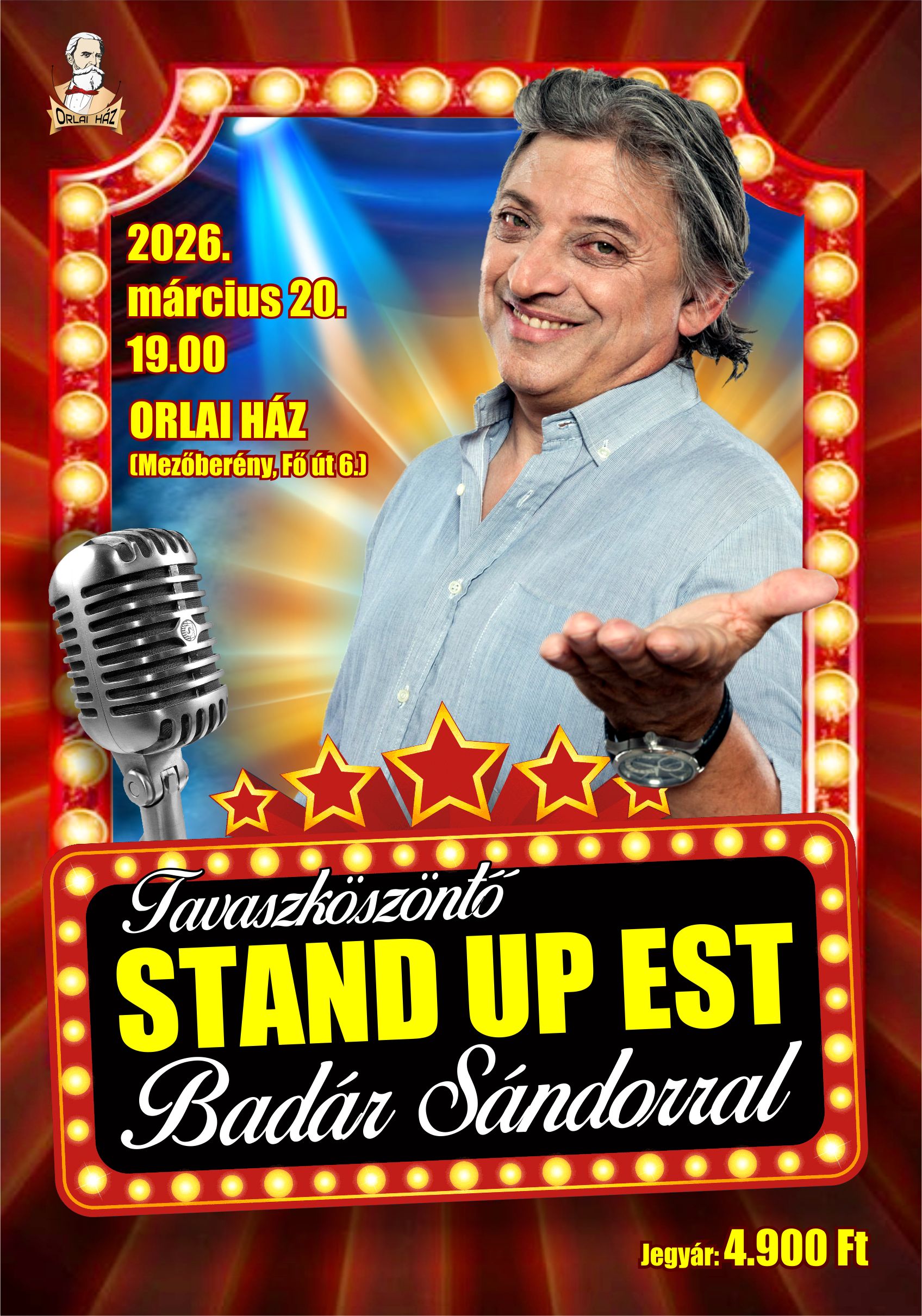 Fábry Sándor a méltán híres humorista lépett 2024. november 6-án az Orlai ház színpadára. A legtöbben az 1998-ban az MTV2-n indított „Esti Showder Fábry Sándorral” című tévéműsorából ismerik, 2012-ben „Fábry” címmel a Duna Televízióban indított új produkciót, továbbá rendszeresen hallhatjuk a Rádiókabaréban is.