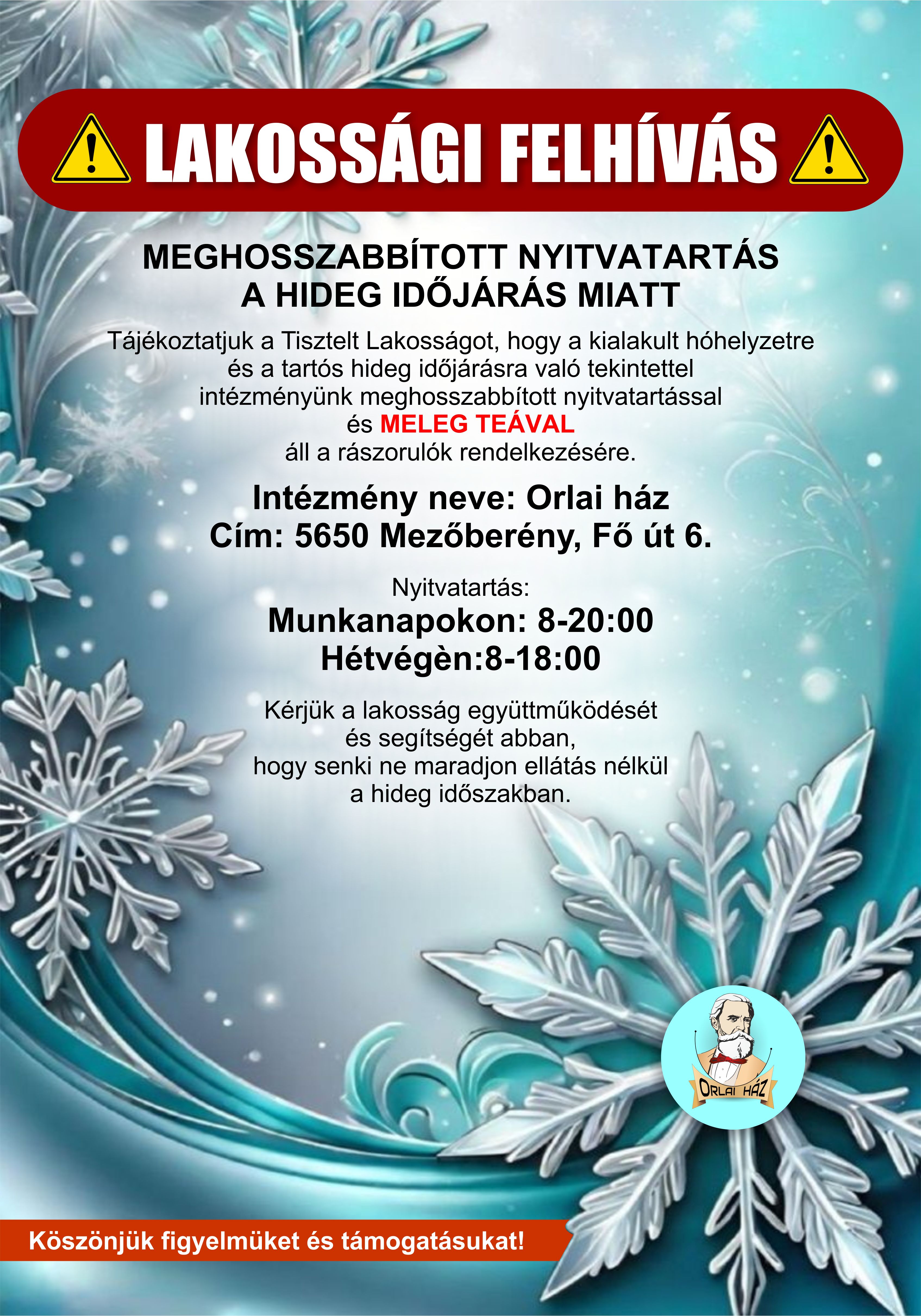 „Hull a pelyhes” – elnevezéssel a téli szünetben – pontosabban december 22-23-án, illetve december 29-30-án – 9-től 12 óráig az Orlai ház ünnepi családi programot tart. December 22-én a résztvevők kézműves foglalkozáson karácsonyfadíszt készítettek, illetve a kicsik a játszóházat és az ugrálóvárat próbálhatták ki, továbbá az arcfestést is. Legközelebb december 23-án várjuk a családokat.