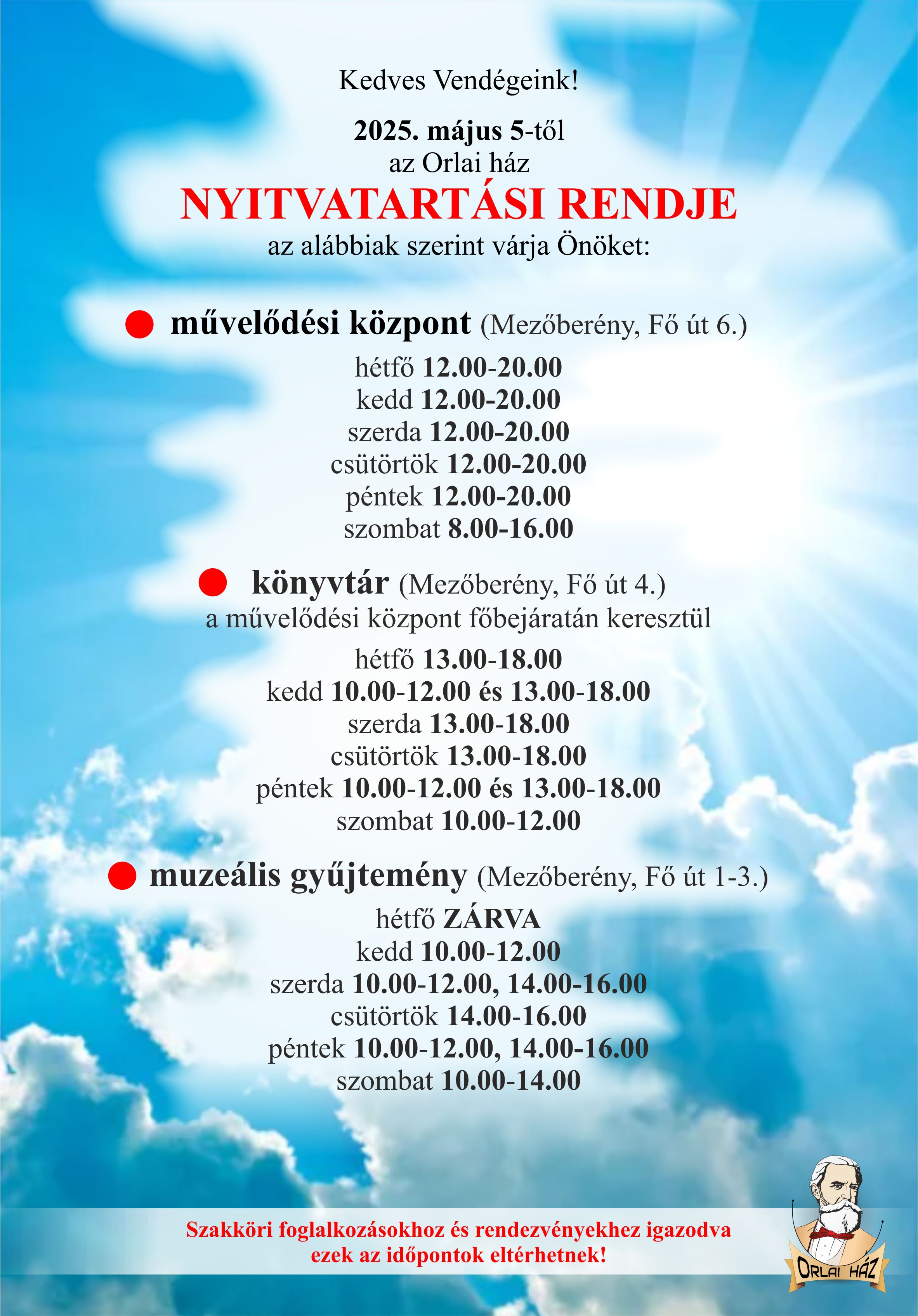 Nyitvatartás 2025. május 5-től