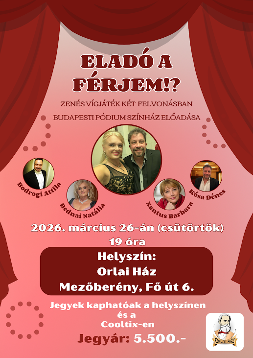 „Eladó a férjem!?” címmel a mezőberényi közönség 2026. március 26-án a Budapesti Pódium Színház zenés vígjátékát látta.