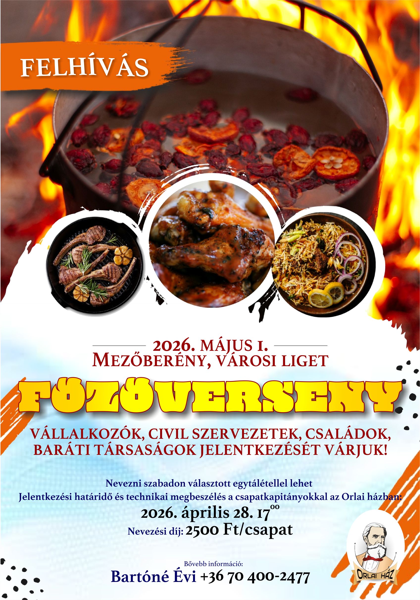 Az Orlai ház az idén is gazdag programmal várta a ligetbe a majálisozókat. 2025. május elsején már korán elkezdődött a városi főzőverseny, ez az idén diákönkormányzat csapatával egészült ki. A megmérettetésbe 13 közösség nevezett. Az elkészült ételeket háromtagú zsűri: Bárdi Mihály, Marton Mihály és Tánczos Imre bírálata el, figyelembe vették az étel ízét, színét, illatát, egyediségét és az összhatást.