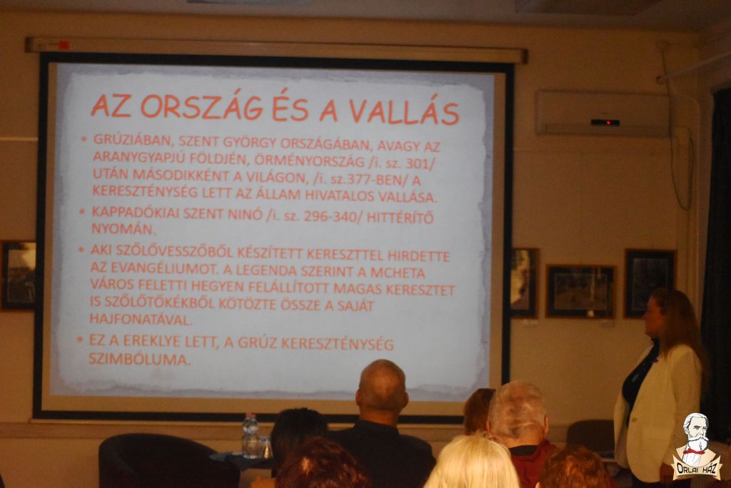 Négyen négy keréken Grúziába címmel tartott úti beszámolót Futaki Éva az Orlai házban 2026. február hatodikán.