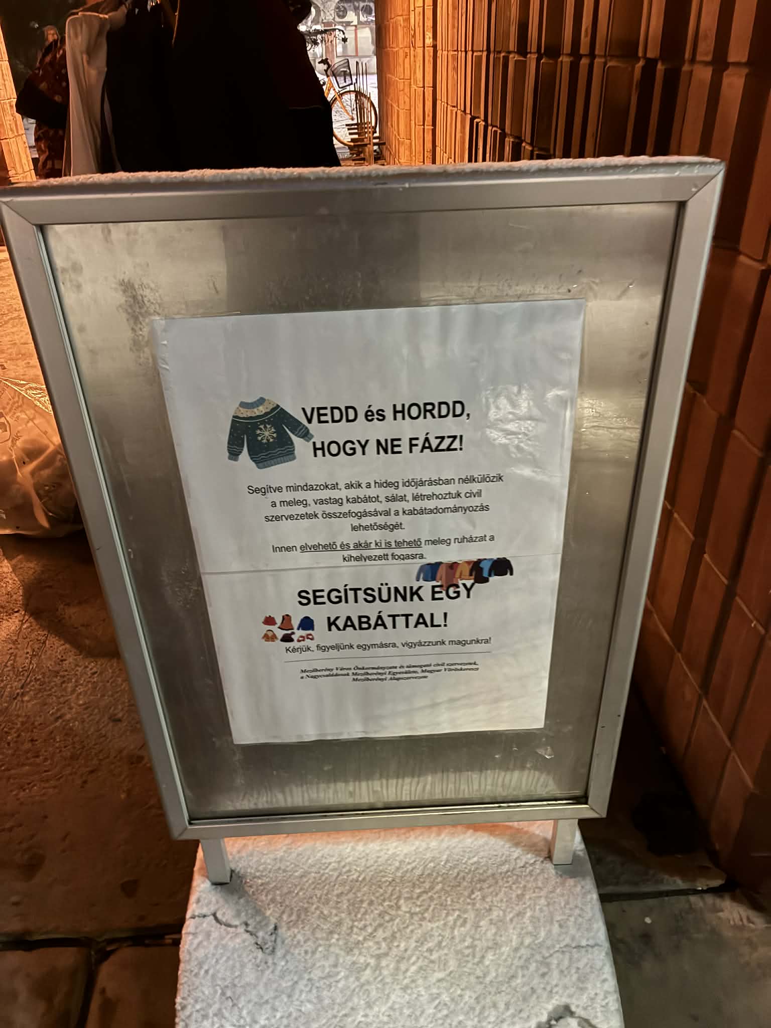 2026. január első napjaiban kihelyezésre került Mezőberényben a POSTA és az OTP közötti fedett területre a kabátfogas, mely már évek óta kabátoknak, bakancsoknak ad helyet.