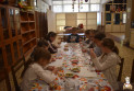 A foglalkozást Rauné Hegedűs Éva vezette, aki lépésről lépésre mutatta be az igazi, húsvéti házi kalács elkészítésének módját. A dagasztás és kelesztés közben lehetőség nyílt kötetlen beszélgetésre is, amely még inkább családias hangulatot teremtett.